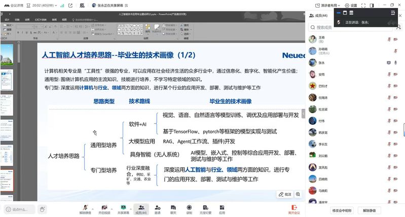 本次培训聚焦高职人工智能专业发展核心需求,特邀东软教育科技集团研究院资深专家张永博士担任主讲。学院人工智能、物联网等相关专业任课教师,齐聚云端,共同参与学习交流。